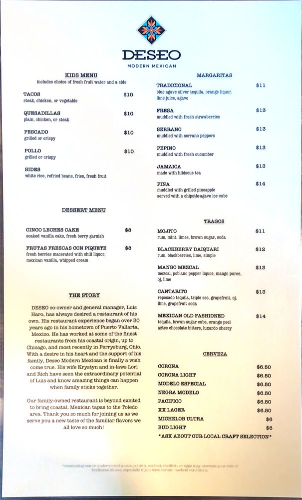 Welcome to Deseo Modern Mexican, a culinary gem in Toledo, OH, where vibrant flavors meet contemporary style. At Deseo, we specialize in elevating traditional Mexican fare into a gourmet experience. Our menu boasts a delightful variety of tacos, including the renowned quesabirria that diners rave about for its freshness and flavor.